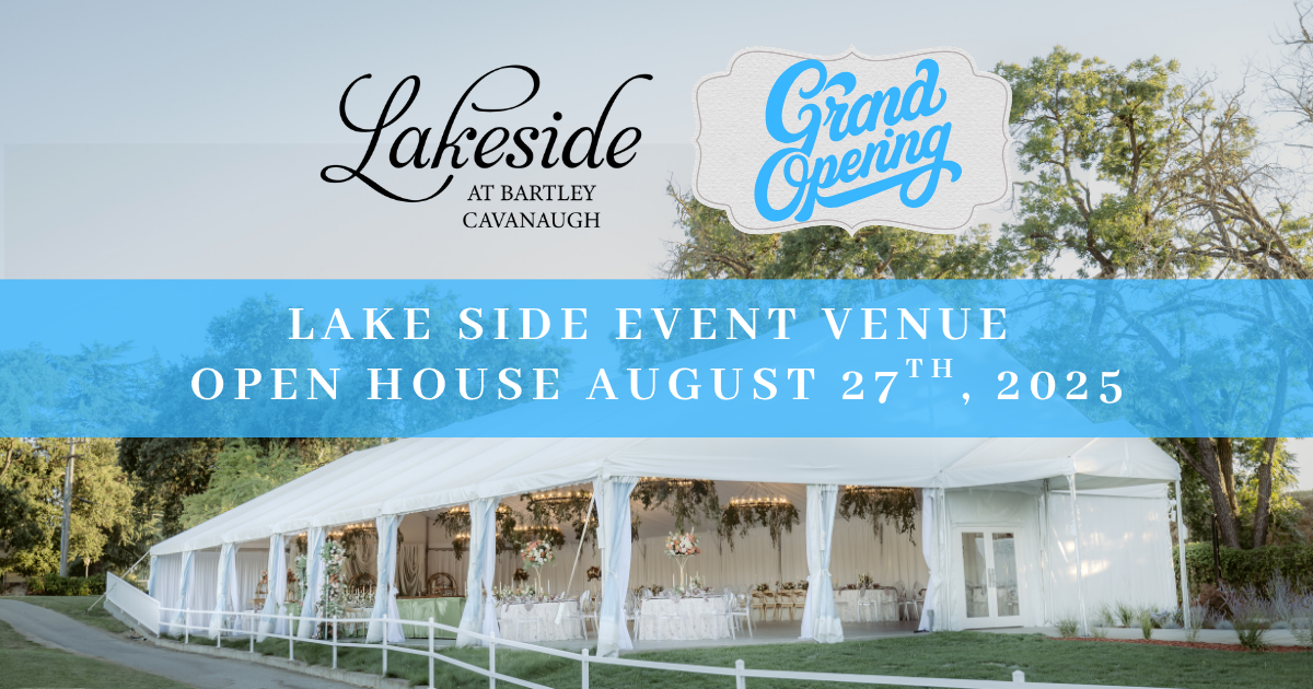 Sacramento couples and event planners, get ready! The Lakeside Event Venue at Bartley Cavanaugh Golf Course is officially opening its doors. Our Open House is Wednesday, August 27, from 6–9 PM.